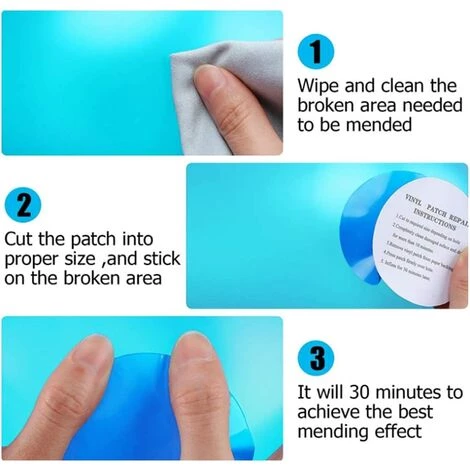 Facile à utiliser : il suffit de nettoyer votre produit gonflable avant d’utiliser le patch, puis de déchirer le produit, de le coller à l’endroit qui doit être réparé, et d’attendre que l’adhérence soit ferme.