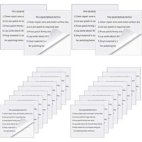 【Taille raisonnable】: contient 22 patchs de réparation, chacun d’une taille de 7 * 7 cm. Vous pouvez les couper en différentes tailles pour réparer la pièce endommagée en fonction de vos besoins. Cela facilite non seulement le processus de réparation, mais améliore également la qualité de la réparation.
