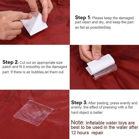 【Largement utilisé】: L’autocollant de réparation peut être collé sur presque toutes les surfaces, adapté à toutes sortes de produits gonflables et à divers matériaux. Piscine gonflable, bouée de sauvetage, tente, auvent, imperméable, sac à dos, conduite d’eau, etc.
