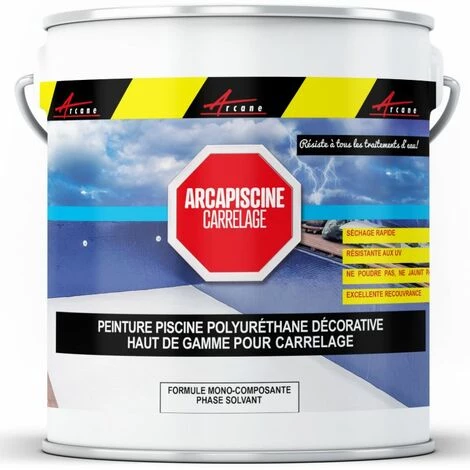 Présentation : La peinture ARCAPISCINE CARRELAGE est une peinture polyurétane solvantée et non jaunissante aux UVs contrairement aux peintures epoxy. Elle est destinée à la protection et à la décoration des piscines de type coque polyester, de piscine carrelée ou béton. ARCAPISCINE CARRELAGE se présente sous la forme d’un kit prédosé contenant 2 composants.