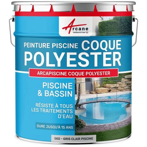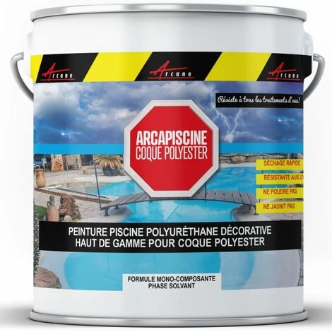- La peinture ARCAPISCINE COQUE POLYESTER est une peinture polyurétane solvantée et non jaunissante aux UVs contrairement aux peintures epoxy. Elle est destinée à la protection et à la décoration des piscines de type coque polyester, de piscine carrelée ou béton.